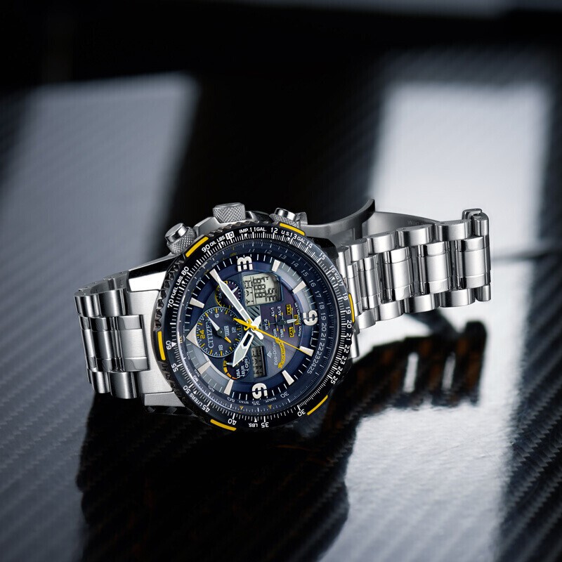 西铁城蓝天使二代光动能时尚 52L 运动表电波蓝宝石表盘男表JY8078