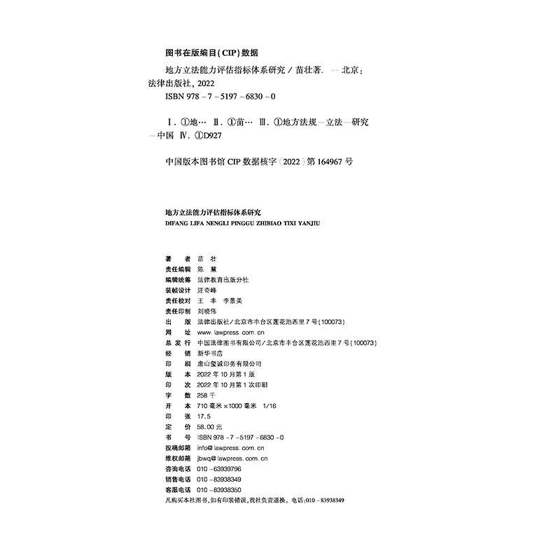 2022新书 法律出版 地方立法能力评估指标体系研究 立法法理学丛书 社9787519768300 苗壮 正版