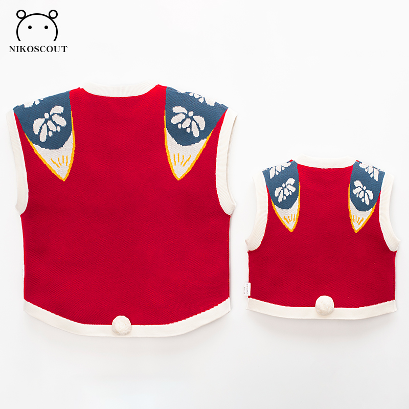 春节新年装 冬季 过年红色潮母子背心 儿童针织马甲亲子装 清仓母女装