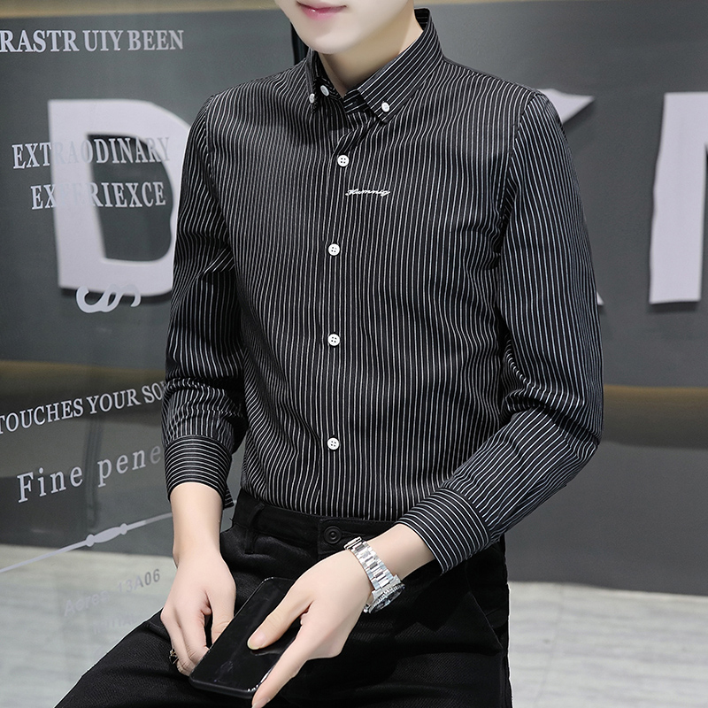 上衣高端加绒加厚冬装 男秋装 保暖条纹白衬衣春秋休闲外套 衬衫 长袖