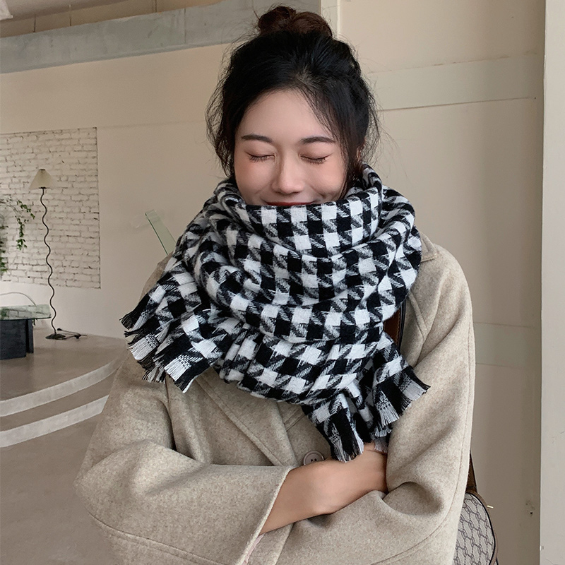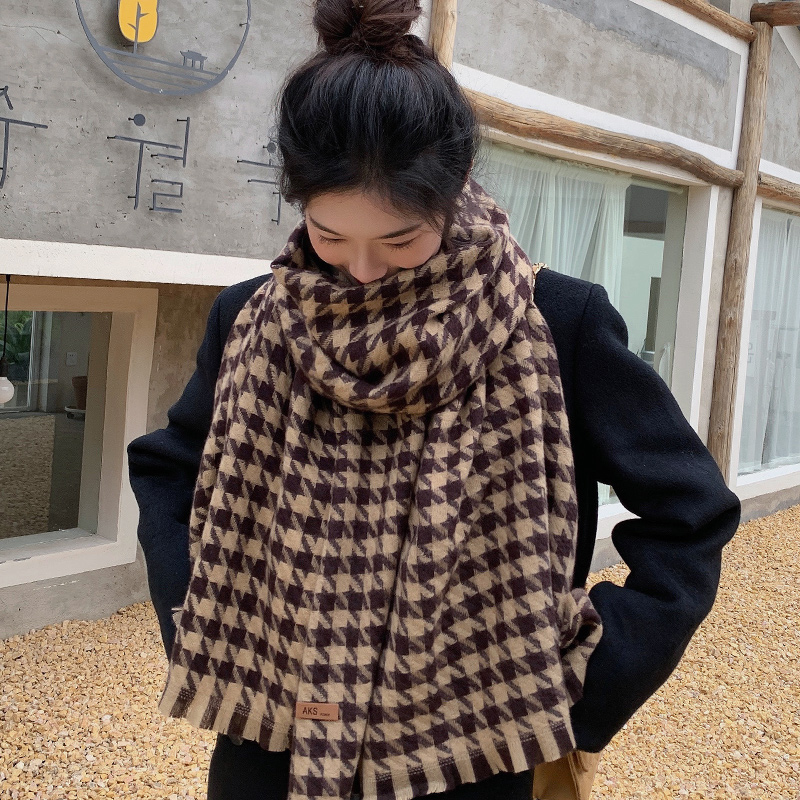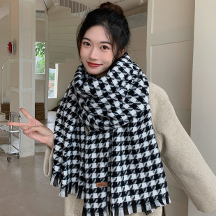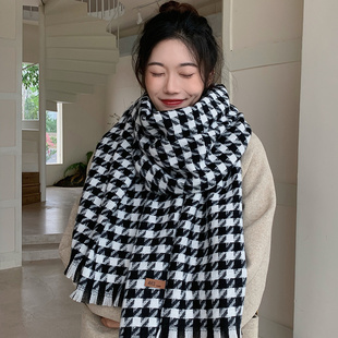 加厚保暖长款 百搭秋冬季 披肩外搭二用 千鸟格子围巾女韩版 2025新款