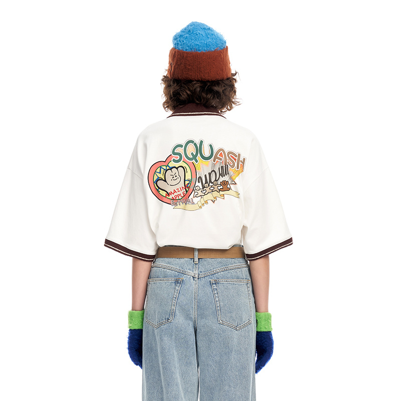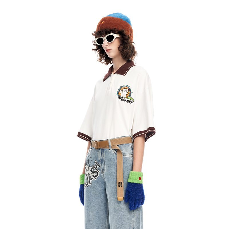IIIVIVINIKO屁头兔系列卡通印花POLO领短袖 针织T恤女S310523350A
