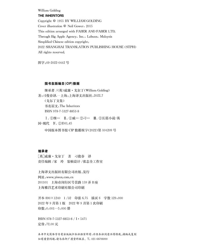 上海译文 著 威廉·戈尔丁 戈尔丁文集:继承者