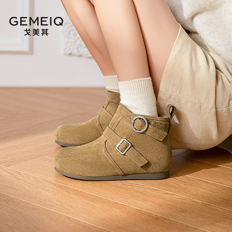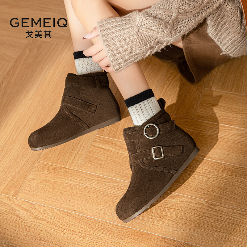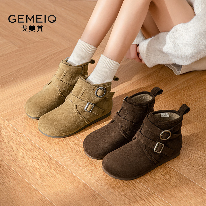 戈美其2024秋冬新款 皮毛一体雪地靴女双搭皮带扣女靴保暖抗寒棉鞋
