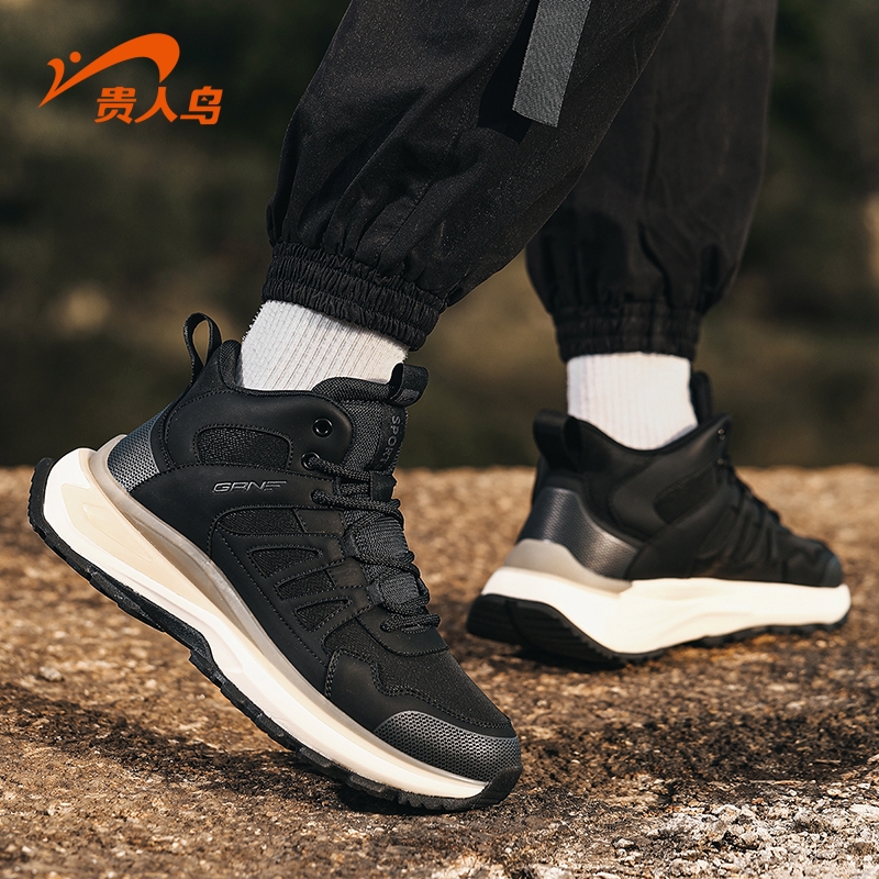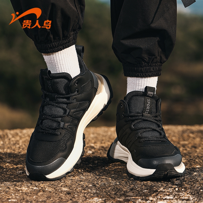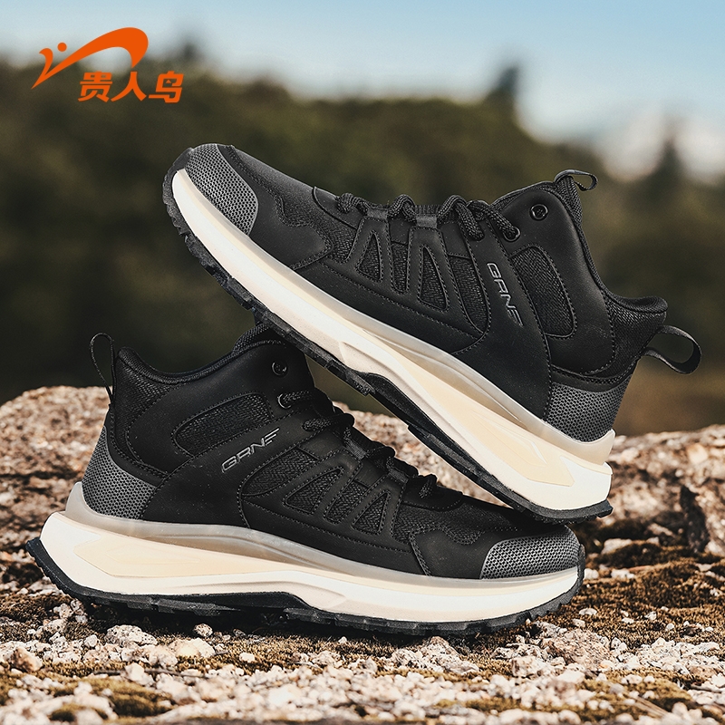 秋季 高帮运动鞋 2025新款 子男黑色登山鞋 户外休闲鞋 贵人鸟傲途男鞋