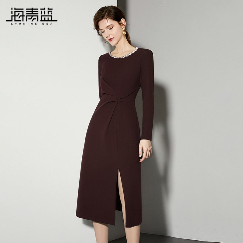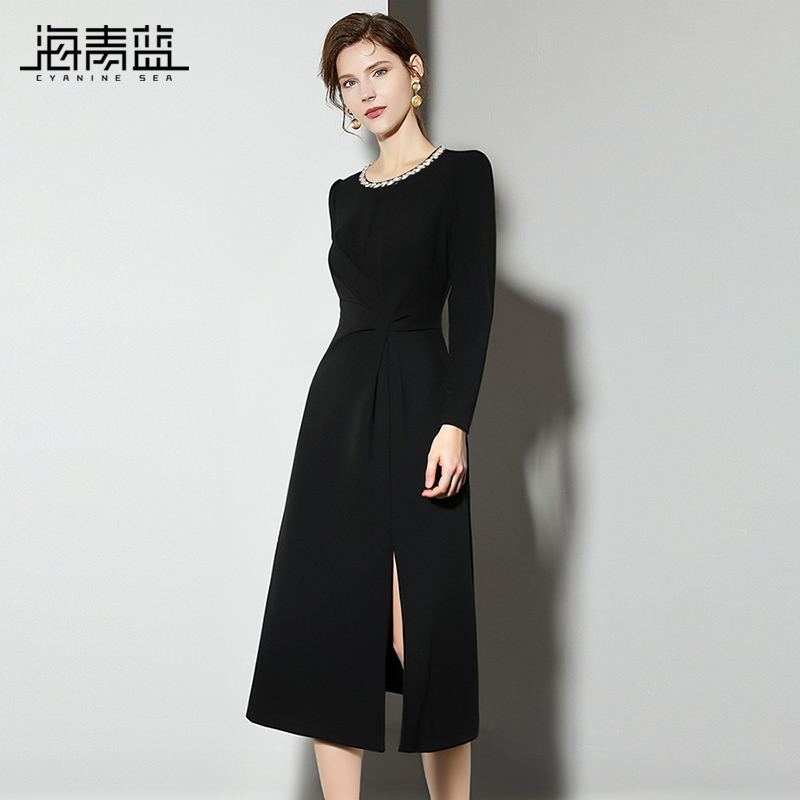 阔色深灰色连衣裙收腰连衣裙气质长裙子25秋冬季 针织内搭裙女 新款
