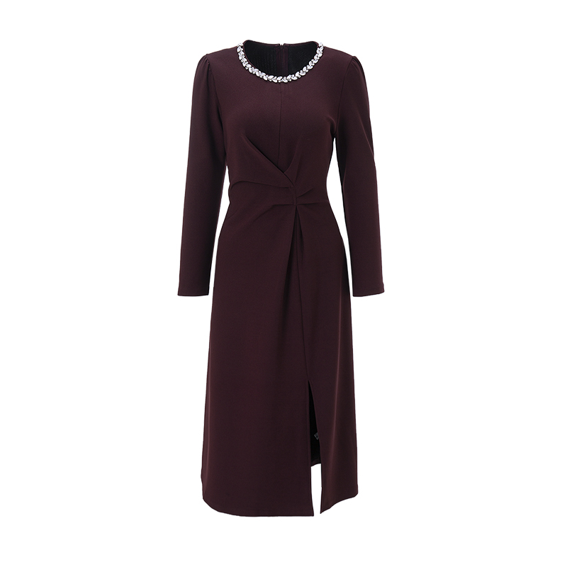 SNIDEL2025秋冬新品 针织连衣裙SWNO254321 气质圆领挖孔露肩长袖