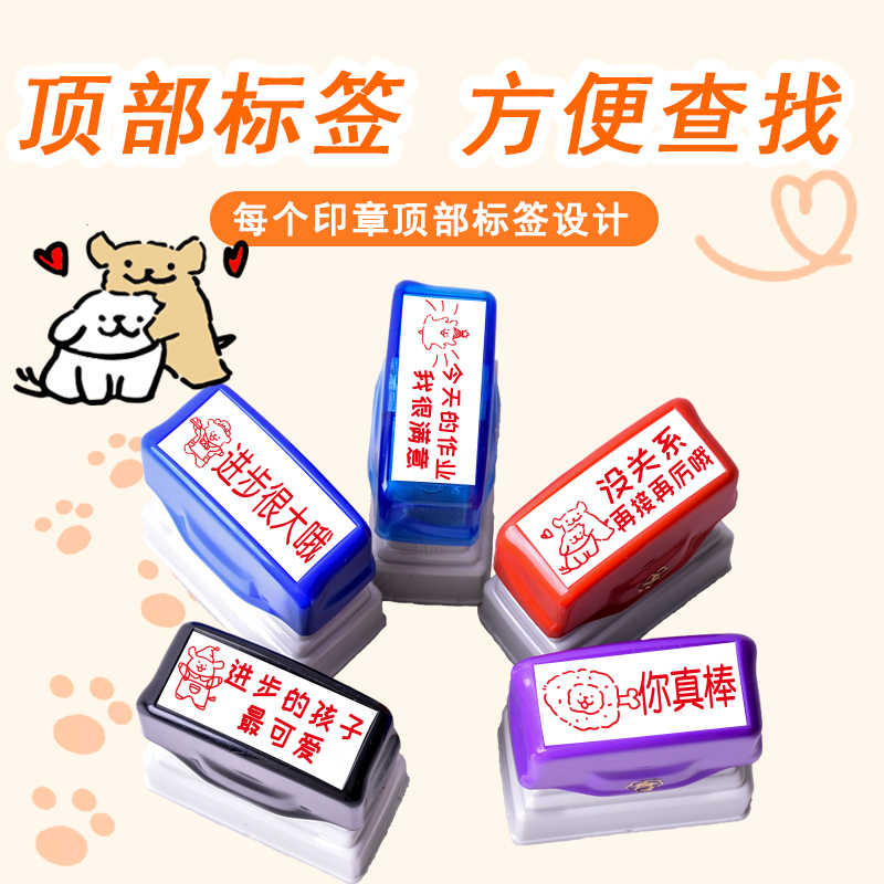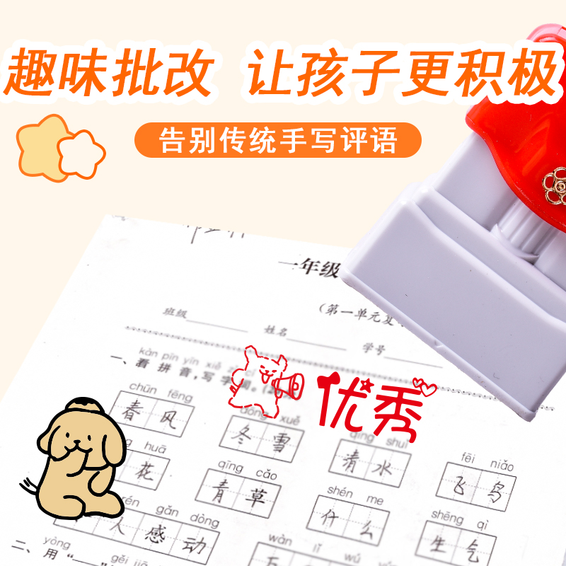线条小狗老师批改作业鼓励印章你真棒优秀呀作业未完成免盖印章趣味评语线条狗周边儿童表扬奖励鼓励章
