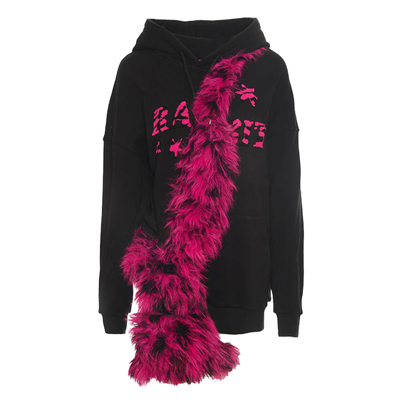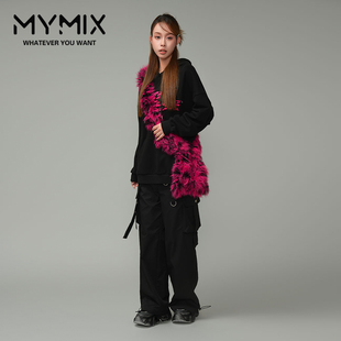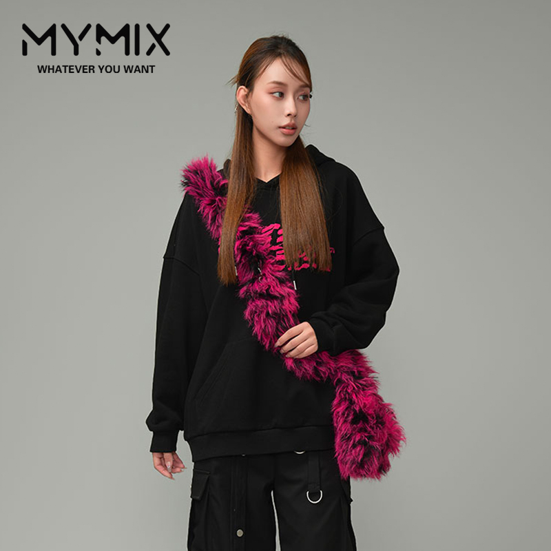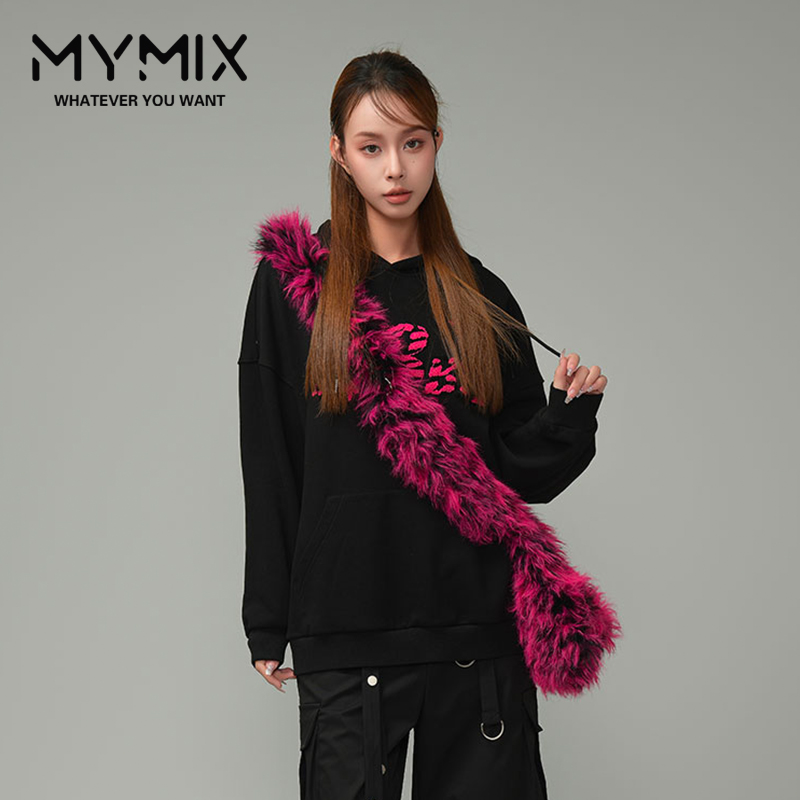 甜美百搭黑色毛绒纯棉连帽长卫衣 新款 MYMIX我 组合2024冬季