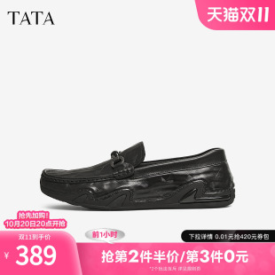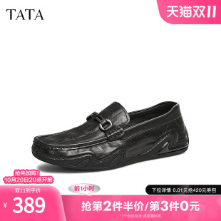套脚一脚蹬软底爸爸鞋 百丽男鞋 乐福鞋 男秋季 A0632AM2 休闲商务皮鞋