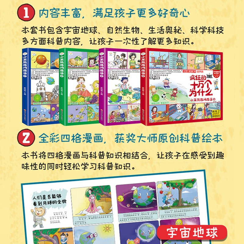 9岁儿童绘本少儿百科全书大百科幼儿园小学生科普类故事书籍 十万个为什么百问百答全套4册儿童漫画书幼儿注音版 小笨熊疯狂