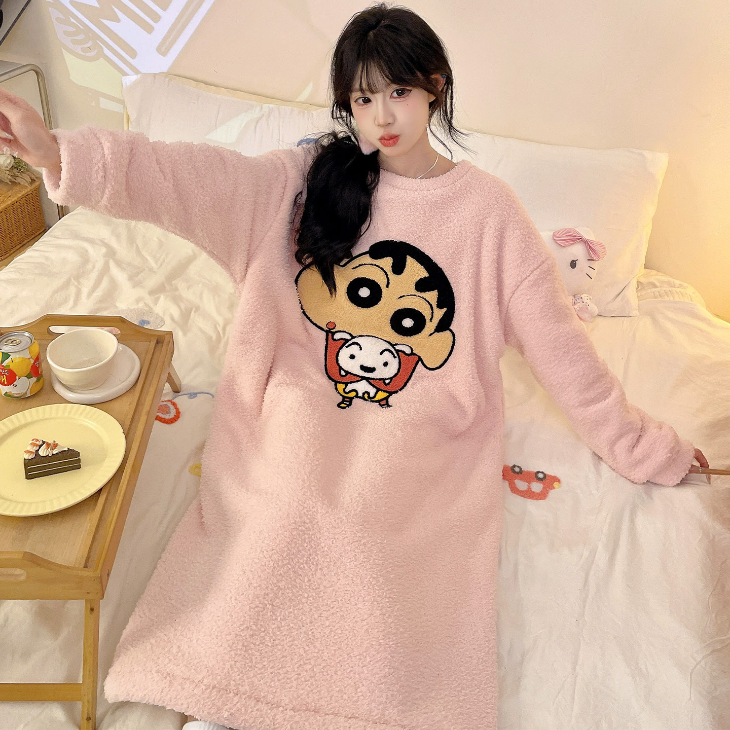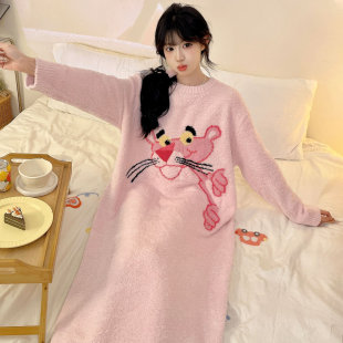 加厚秋冬睡裙长鲨鱼睡袍套装 男士 家居服 2025新款 珊瑚绒睡衣女冬季