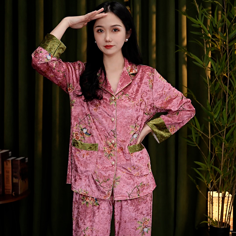 大码 春秋开衫 女士家居服 加厚珊瑚绒睡衣女冬法兰绒加绒套装 秋冬季