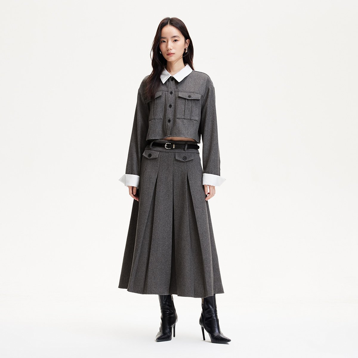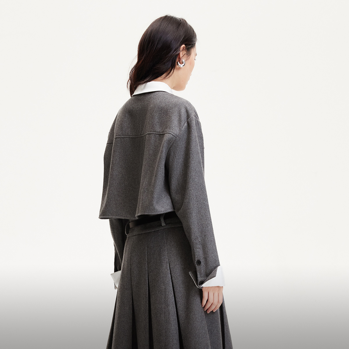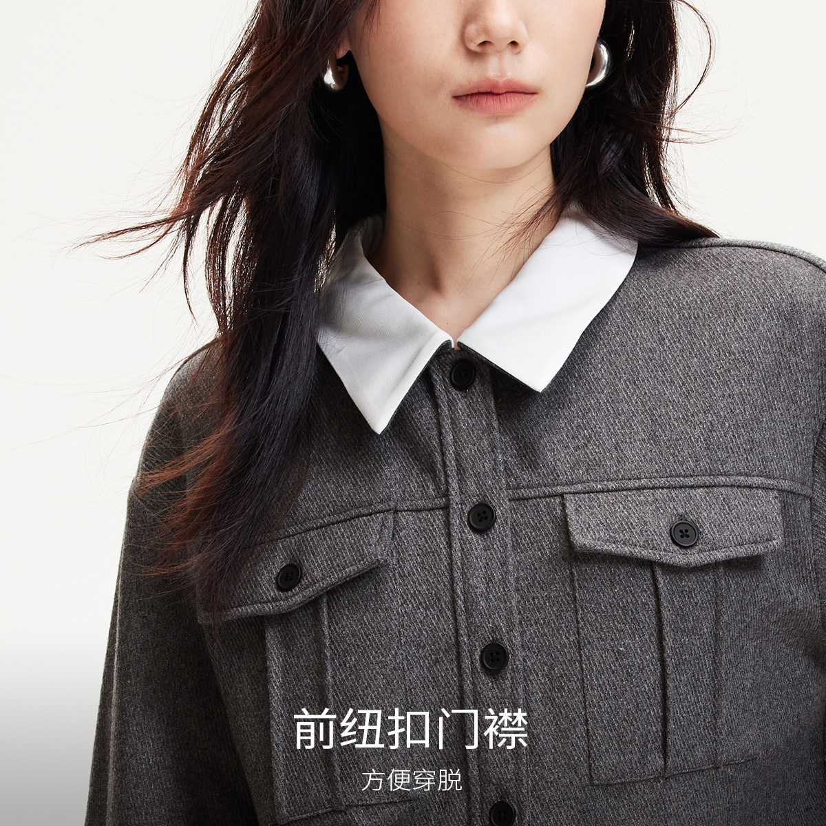 新款 2025春季 含羊毛撞色翻领高级感外套325105008 Moda衬衫 Vero