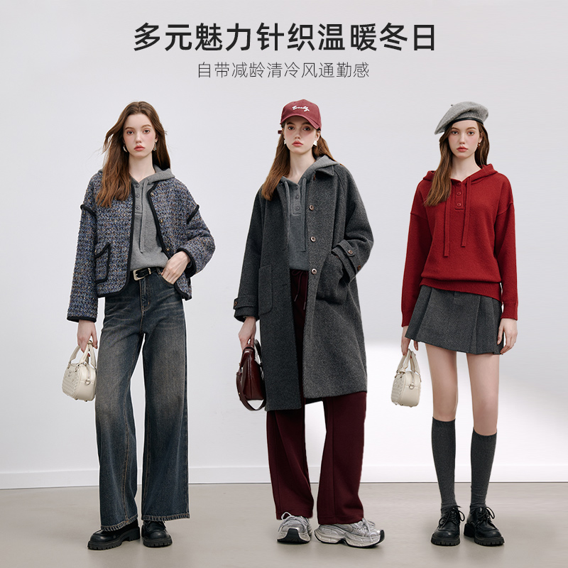 休闲撞色亨利领套头毛衣 2025秋新款 TeenieWeenie小熊女装 毛针织衫