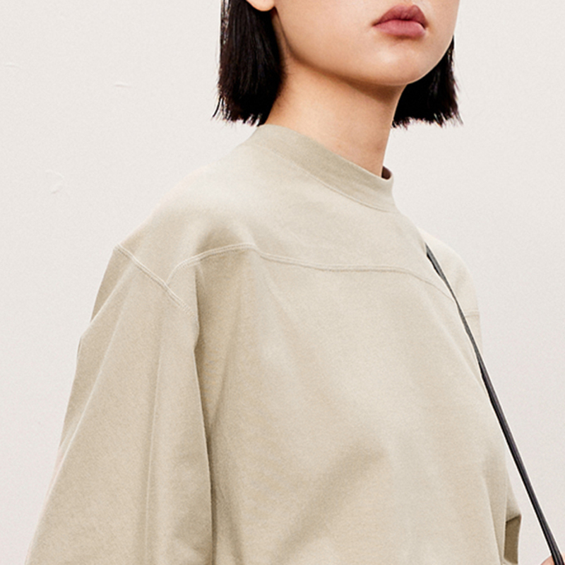 T恤女2O7111620 短袖 LESS秋棉质休闲简约宽松上衣利落圆领时尚 长款