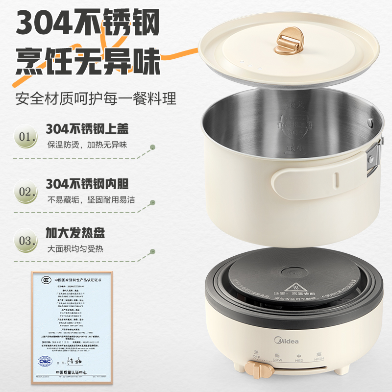 九阳电热火锅不锈钢家用多功能IH秒涮蒸煮炒煎锅0涂层分体大容量