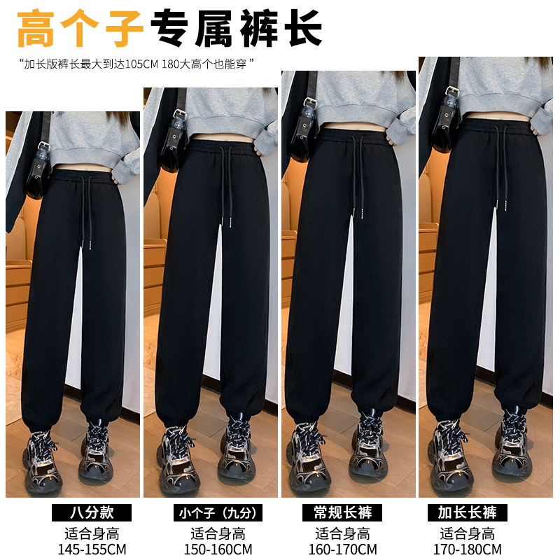 休闲裤 加绒运动裤 高腰宽松束脚冬季 加厚黑色卫裤 子 女秋冬2025新款