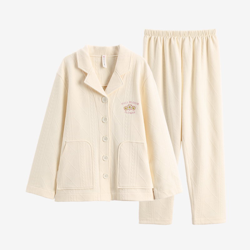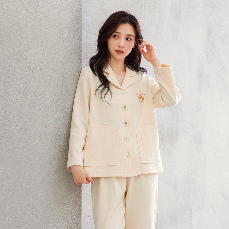 开衫 芬腾女士睡衣秋冬季 春秋加大码 套装 家居服 纯棉空气棉夹层长袖