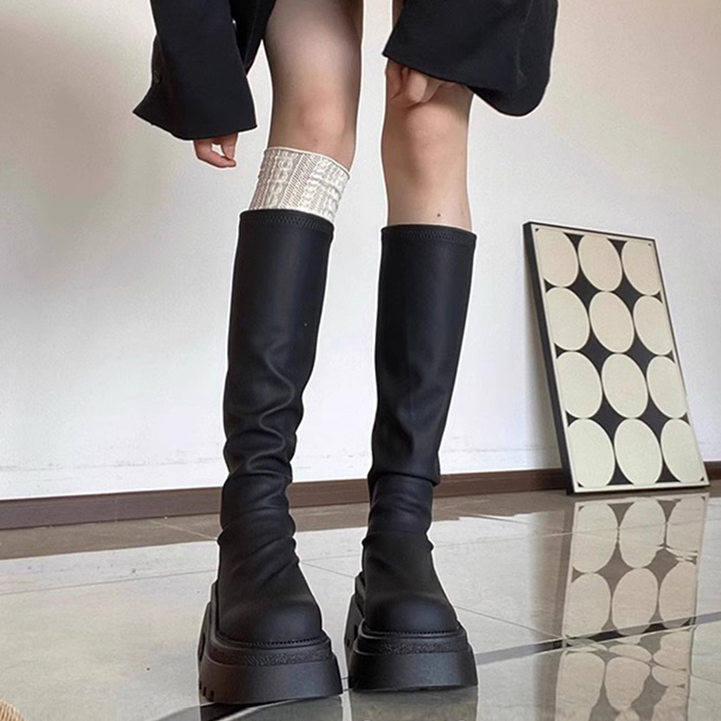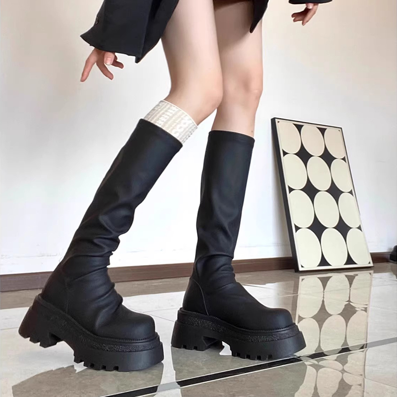 2025新款 子棕色 长靴女高筒显瘦秋冬中筒靴堆堆靴小个子靴子黑色鞋