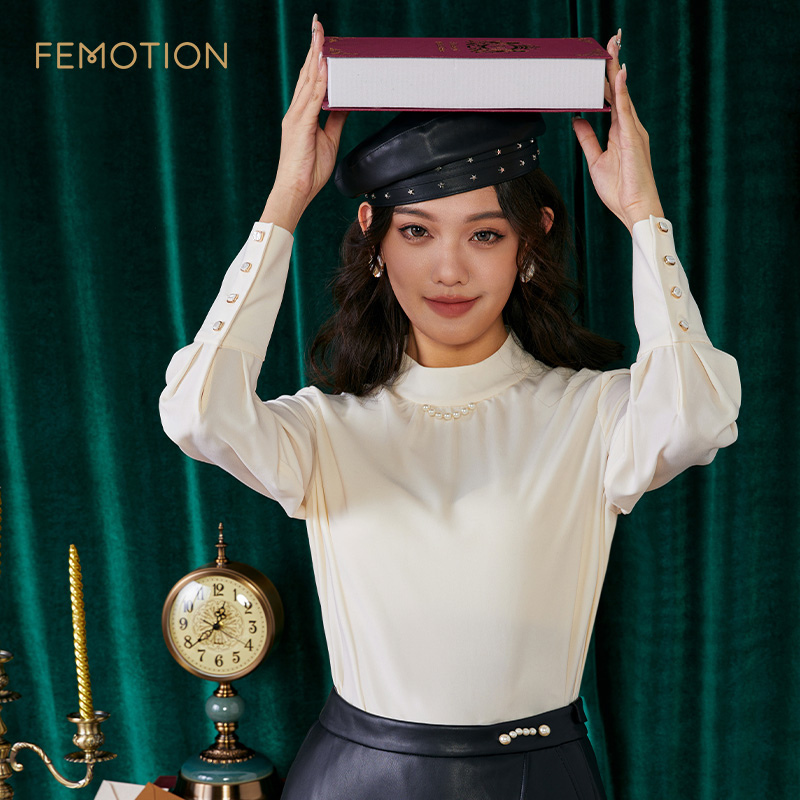 风情半高领宽松套头衬衣XI4G3004 法式 清仓 旗下芬岸女装