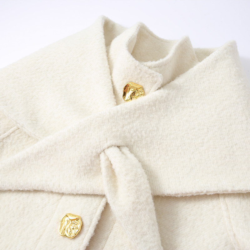 翻领蝴蝶结毛呢外套 乐町学院风纯羊毛双面呢大衣长款 冬季