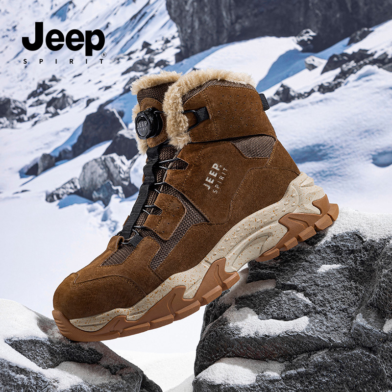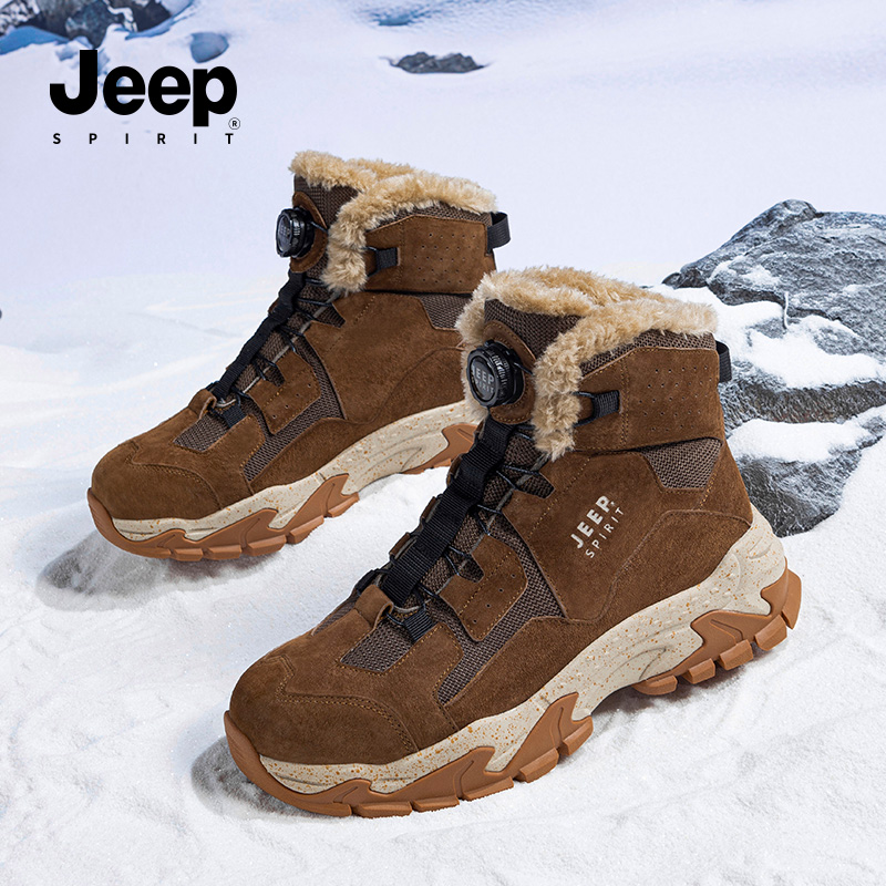 雪地靴2024冬季 男款 新款 男士 jeepspirit吉普男鞋 加绒抗寒鞋 高帮鞋