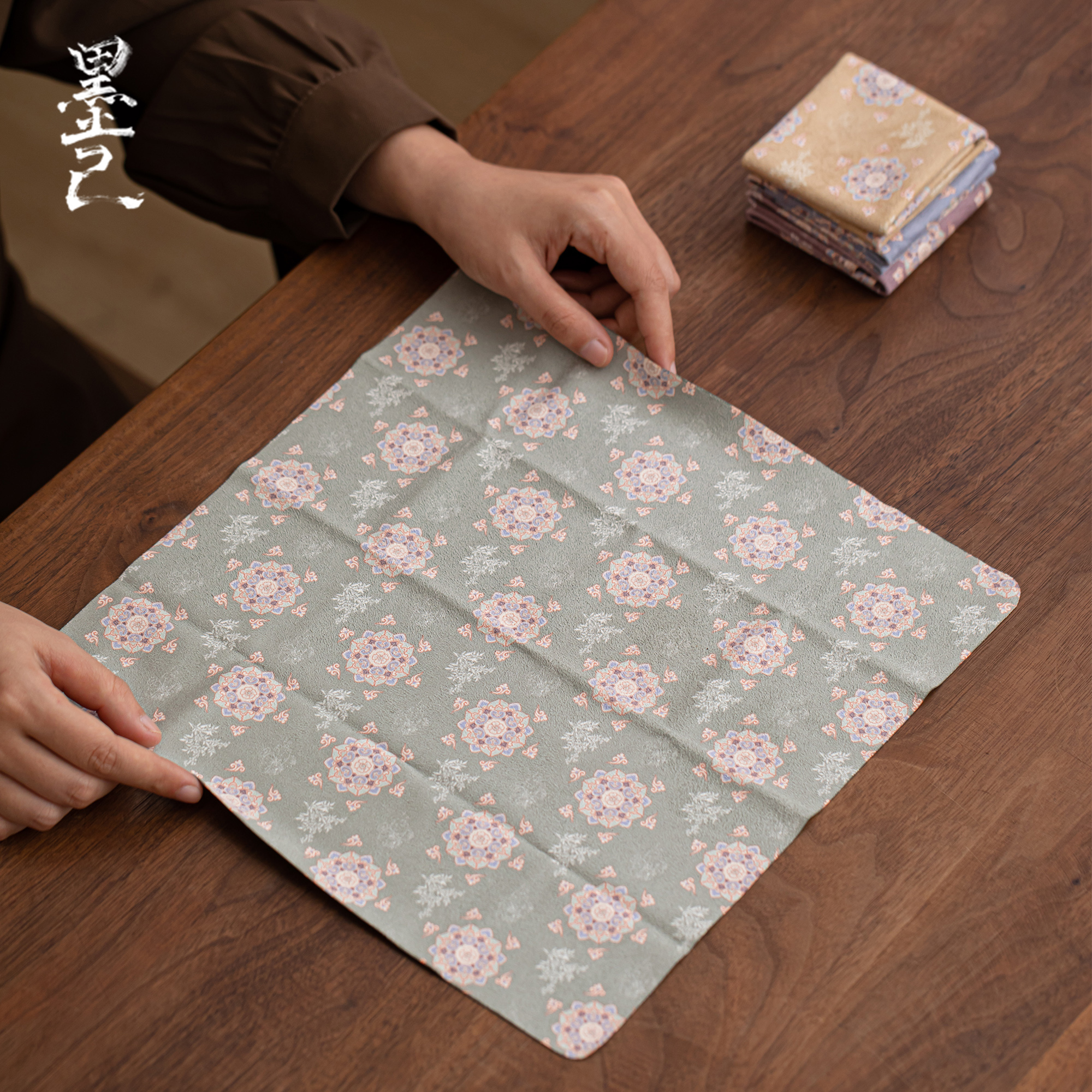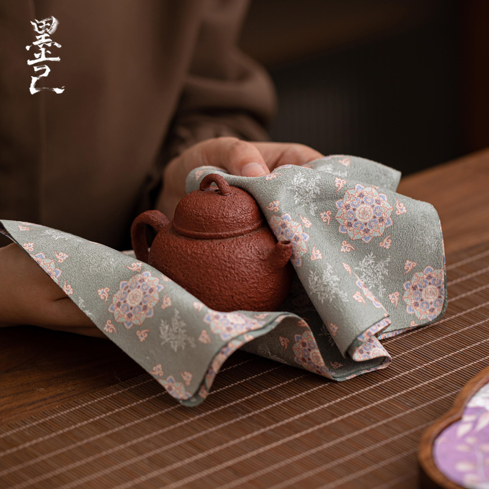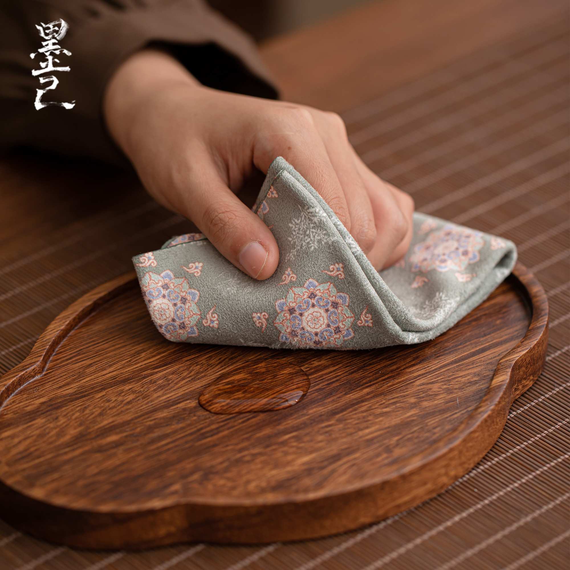 墨己茶巾彩绘宝相花高档吸水擦桌布茶垫布茶艺茶抹布不掉毛养壶巾