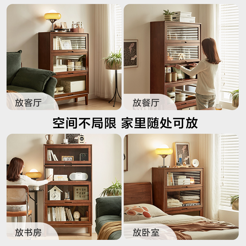 政府补贴林氏家居实木书柜带玻璃门展示柜储物柜置物书架落地斗柜