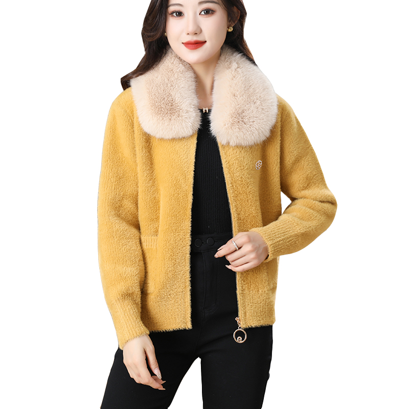 拉链款 韩版 毛衣外套 女短外套2025年秋冬新款 毛绒领拼接水貂绒开衫