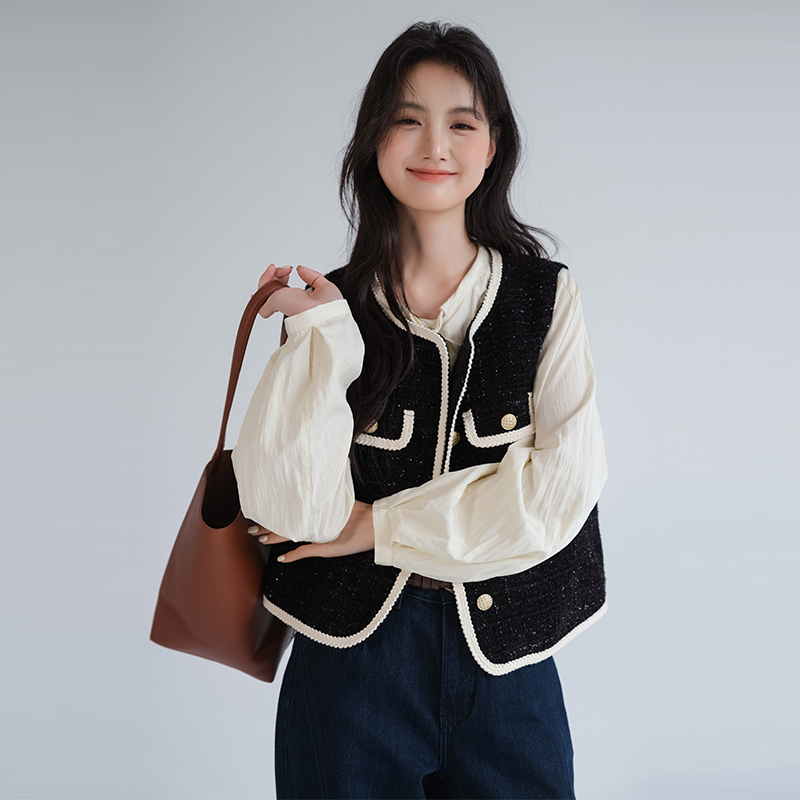 蓝若水大码 小香风马甲背心 女装 秋季 洋气叠穿坎肩外套 新款 法式