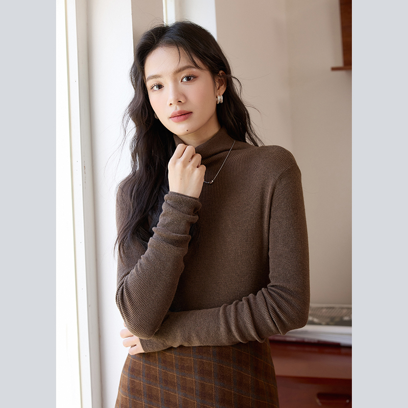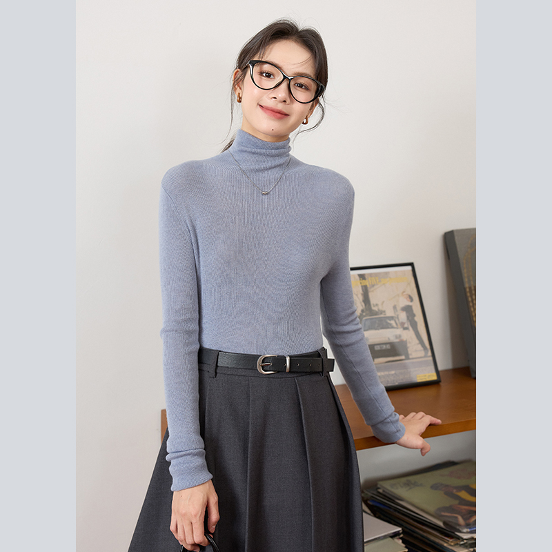 奈格薇儿小个子高领毛衣女2024新款 羊毛桑蚕丝内搭上衣 秋冬修身