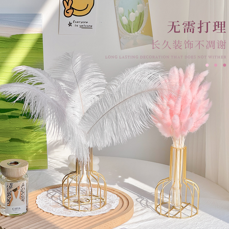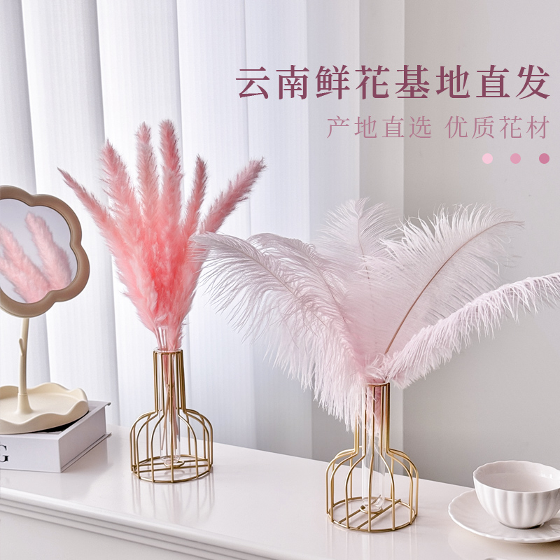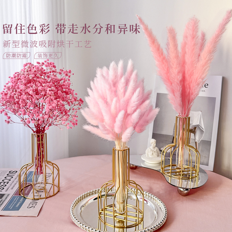粉色芦苇草干花花束直播间装 饰摆件仿真花天然风干客厅高级感摆设