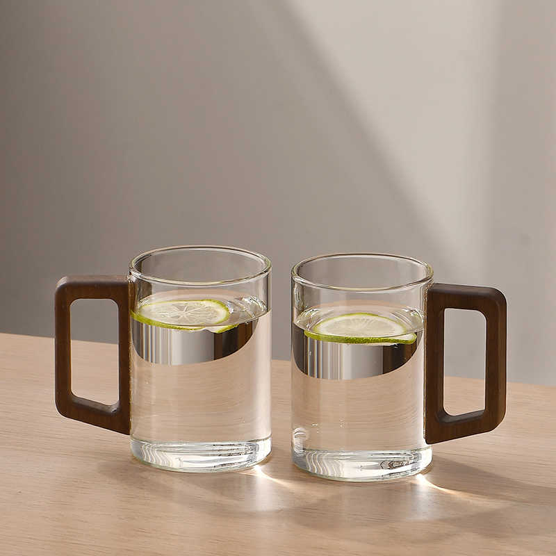 青苹果玻璃杯家用耐热茶杯套装 水杯啤酒杯扎啤杯子大容量加厚带把