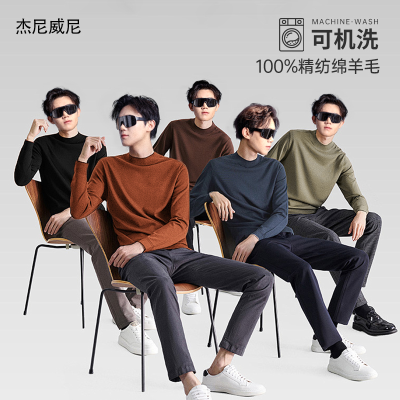 反季 冬季 清仓 男士 半高领100纯羊毛衣 杰尼威尼可机洗全羊毛衫