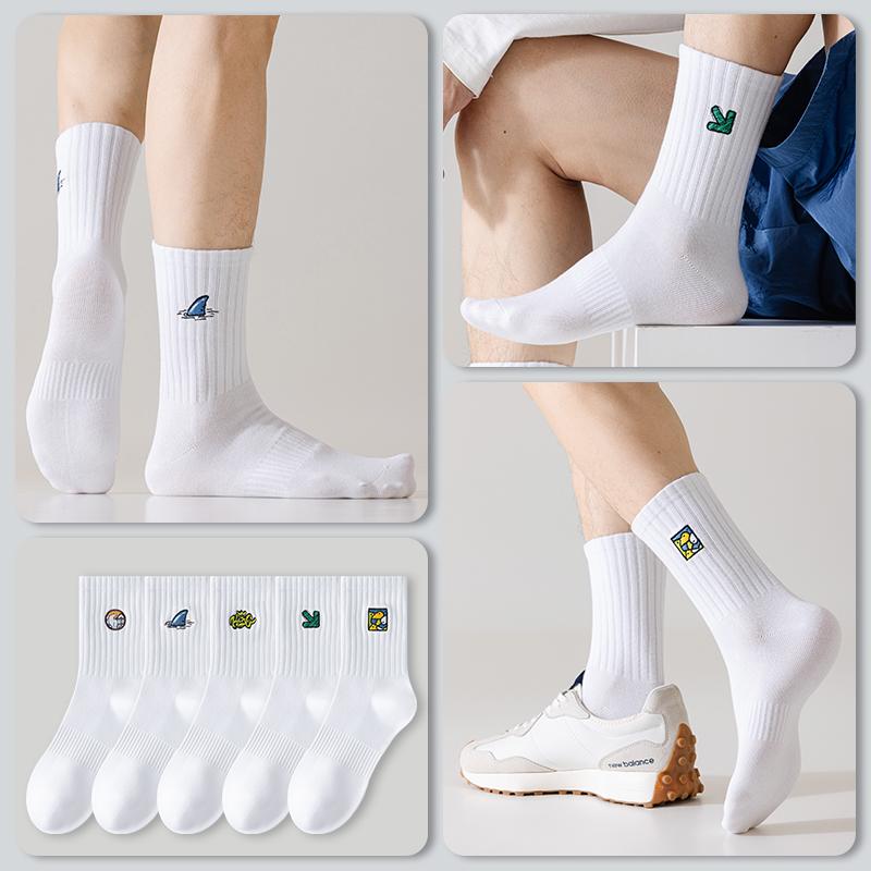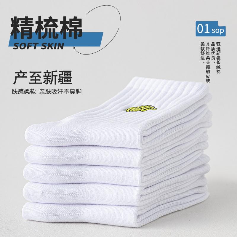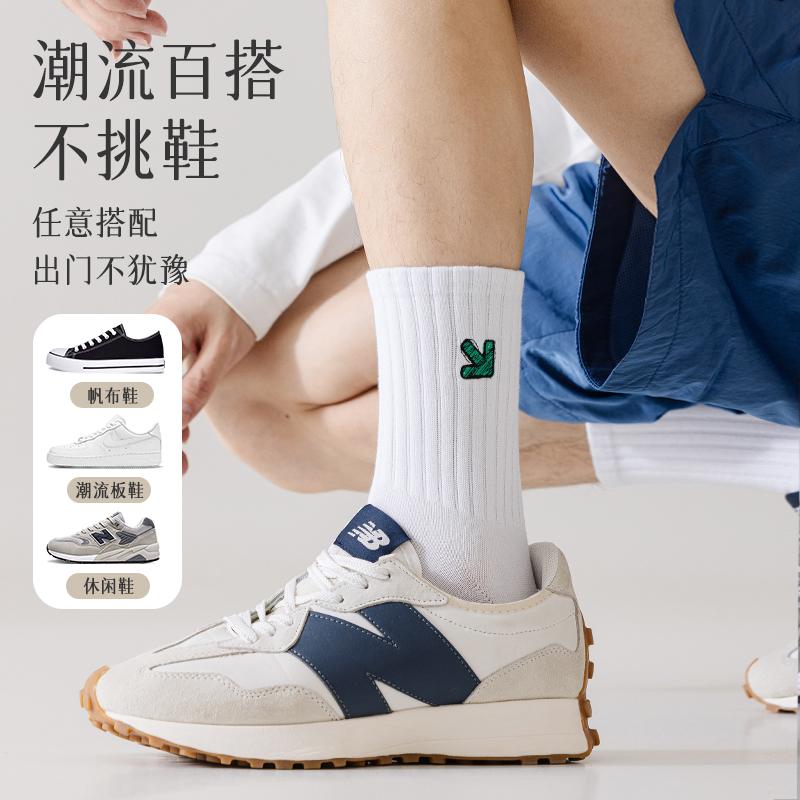 袜子男秋冬白色100%纯棉全棉防臭中筒男袜青少年男士 运动吸汗大码