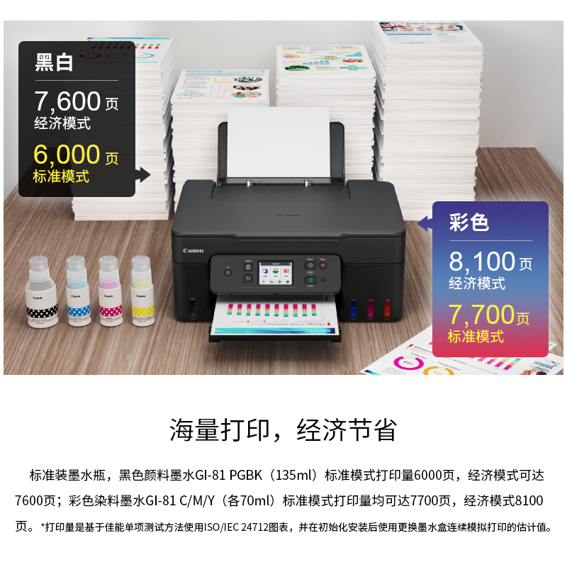 Canon佳能G3810彩色墨仓式 打印机复印扫描一体机小型家用政府补贴连供多功能无线可连手机A4喷墨学生办公专用