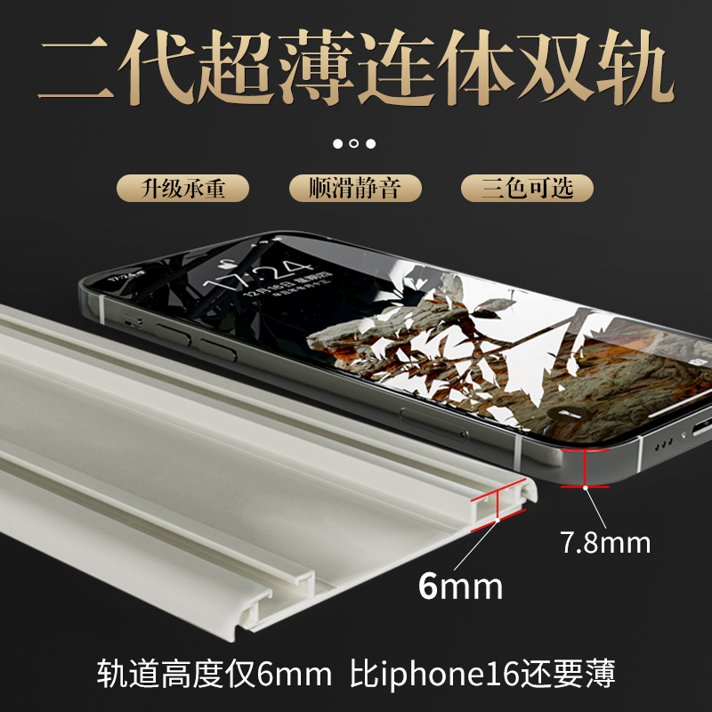 滑道 窗帘杆挂钩导轨顶装 静音窗帘轨道免打孔安装 滑轨滑轮阳台侧装