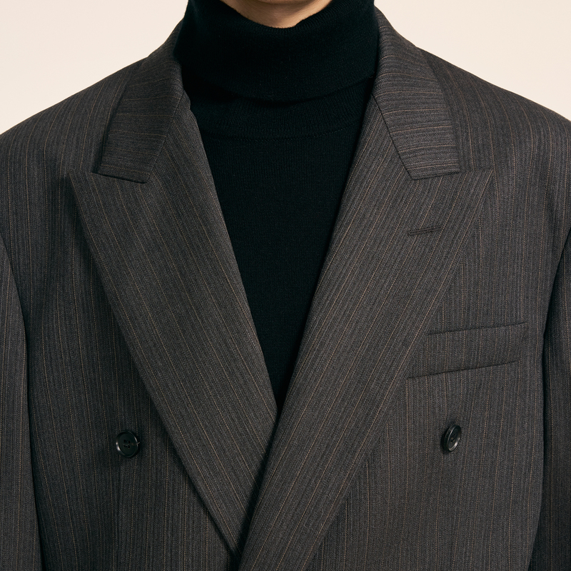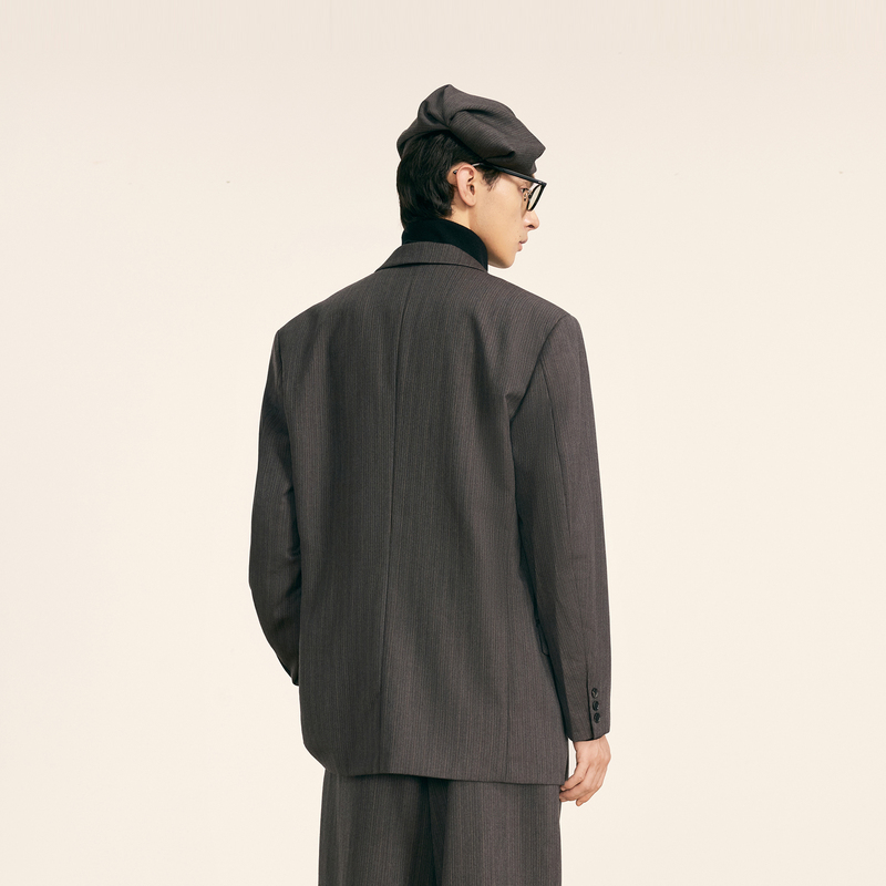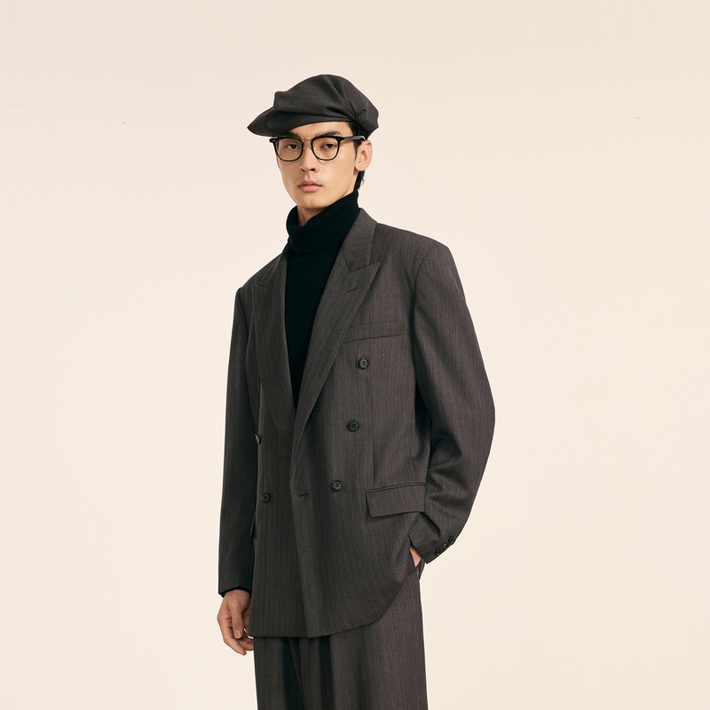 时尚 双排扣休闲宽松西服绵羊毛复古西装 潮流外套 秋冬新款 速写男装
