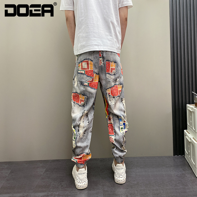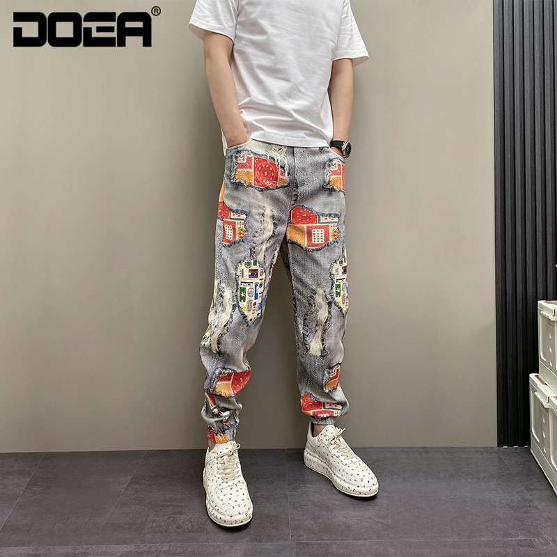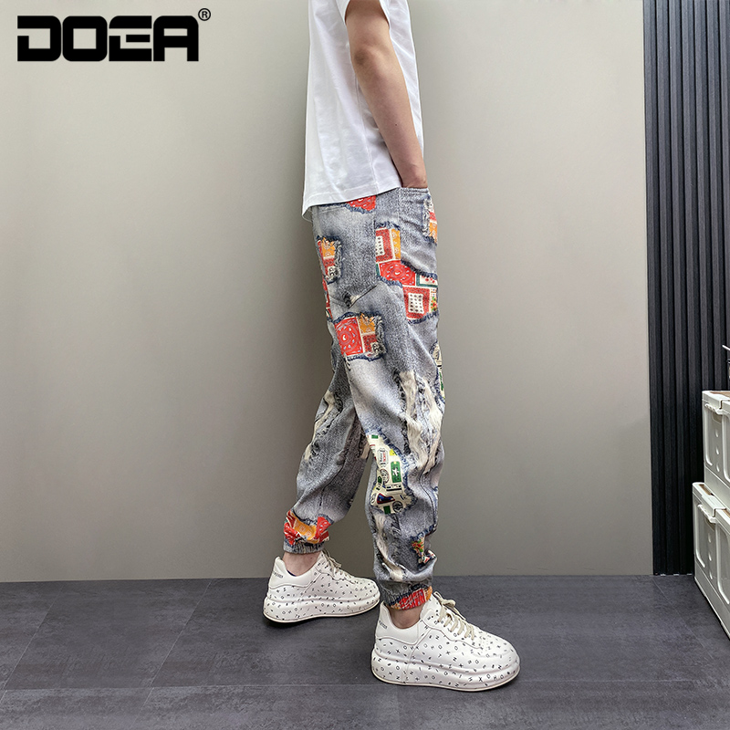 设计感青年休闲牛仔裤 百搭痞帅束脚刺绣个性 子 潮流男士 2025年春季