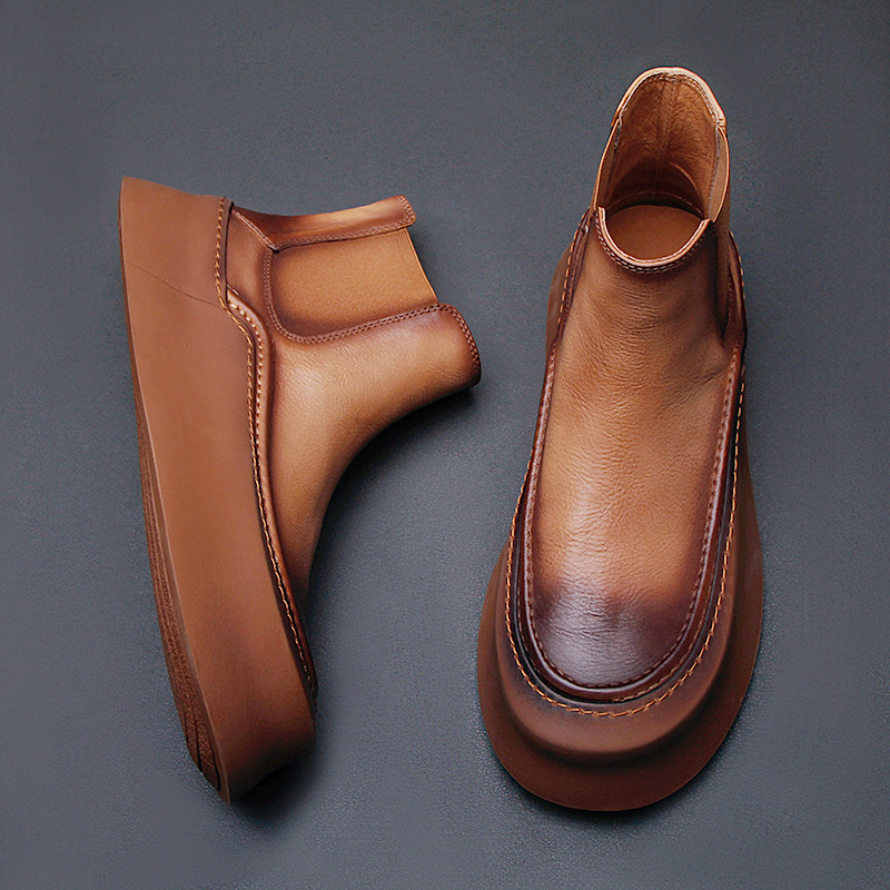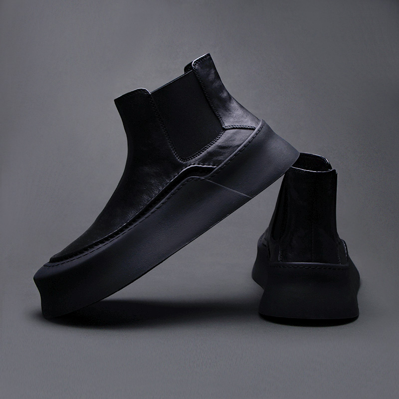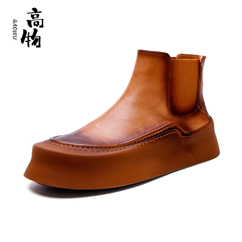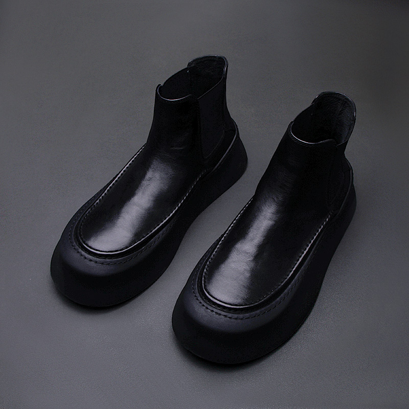 欧洲站复古男靴2025冬季 厚底切尔西靴潮流一脚蹬短靴男真皮马丁靴