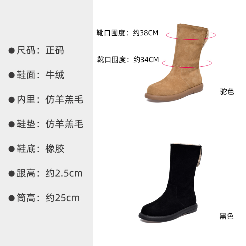 平底保暖雪地靴245 宽胖脚肥41 真皮简约时尚 优选2024冬款 217 43码