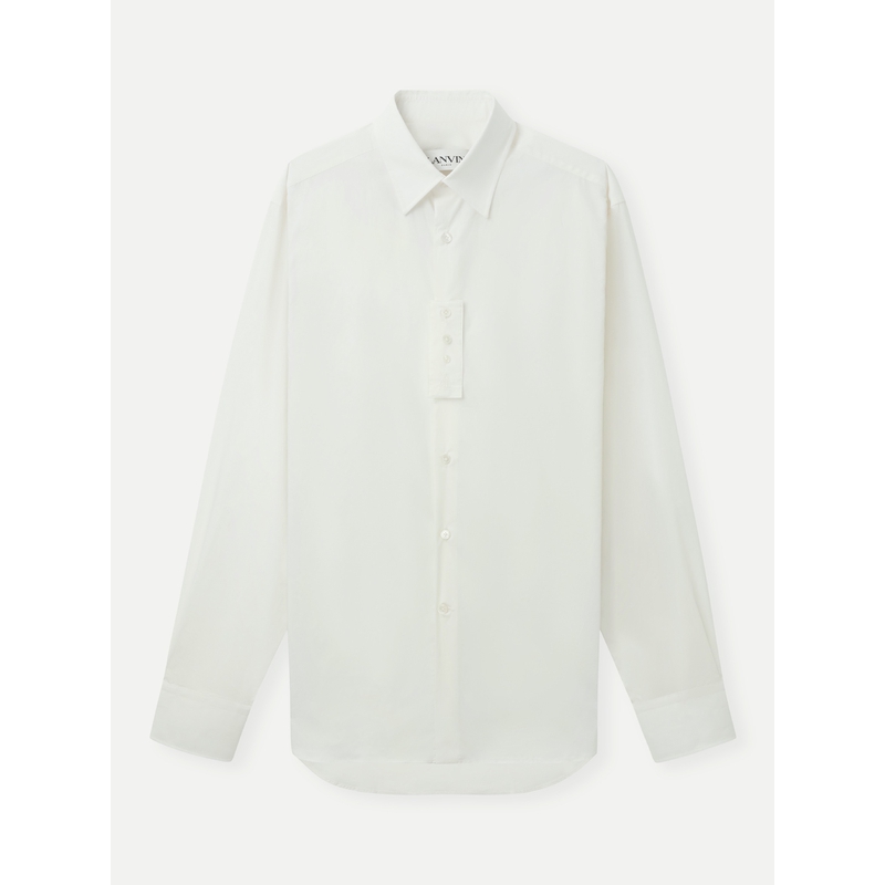 女2025春宽松休闲通勤气质上衣 衬衫 花边拼接法式 半开V领白色长袖