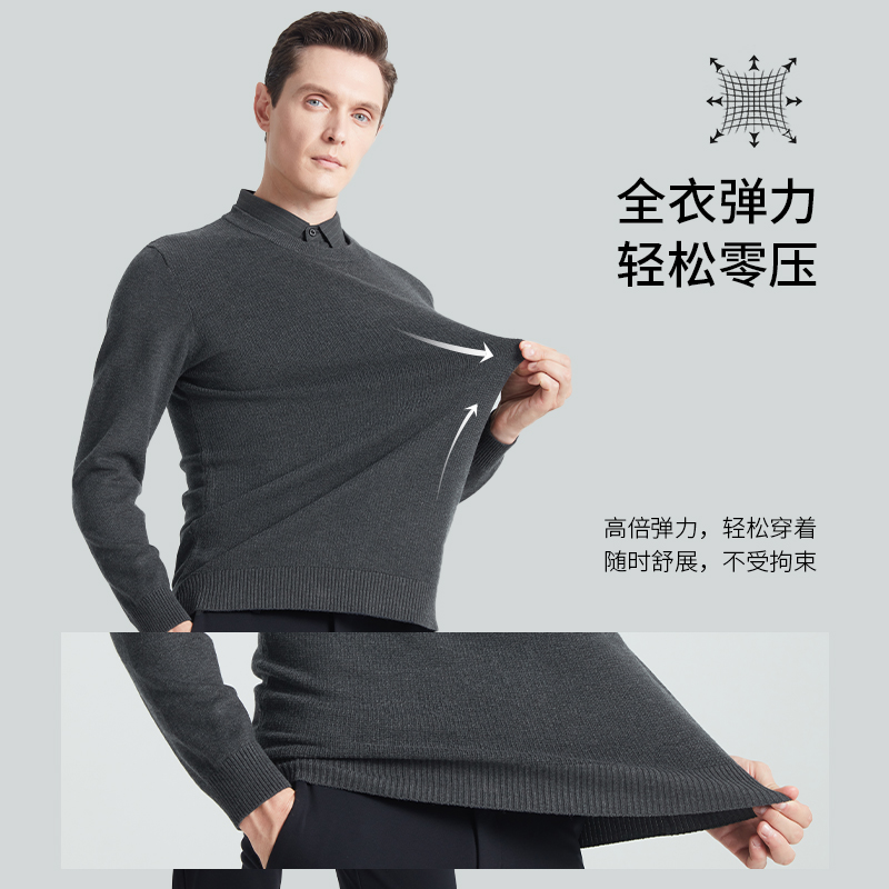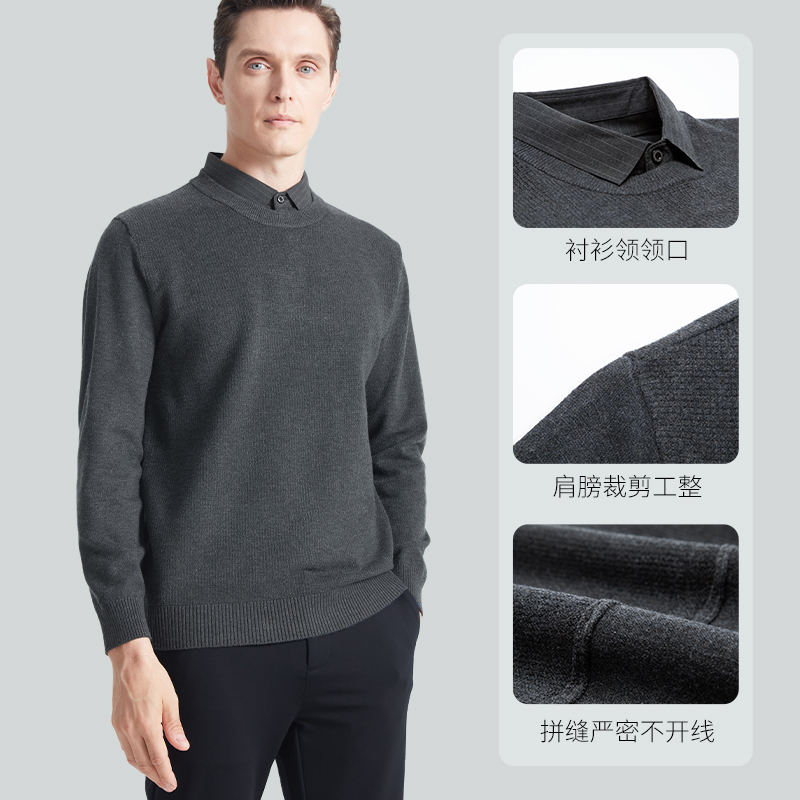 商务休闲毛衣男款 SHANSHAN杉杉保暖针织衫 款 2025秋冬季 假两件 男士