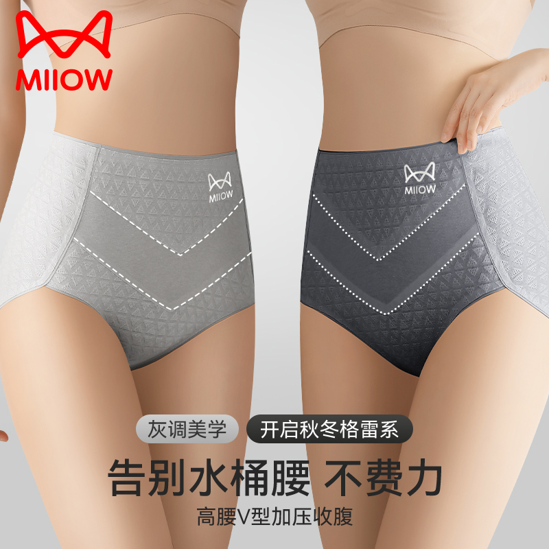 猫人高腰收腹内裤 纯棉女士翘臀提臀纯棉裆透气无痕三角裤