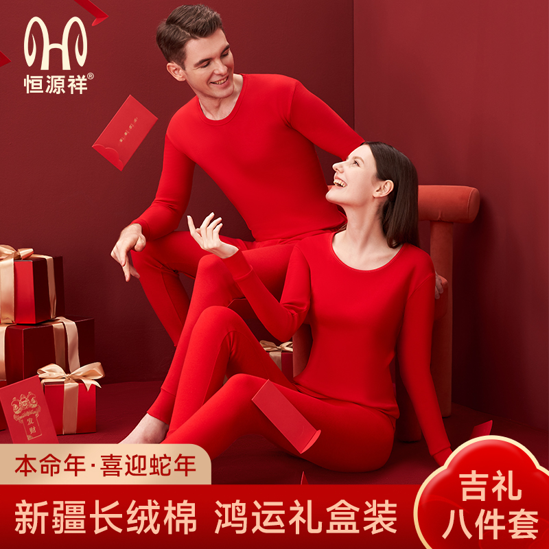 情侣冬季 男女装 2025本命年蛇年保暖内衣套装 恒源祥大红色秋衣秋裤