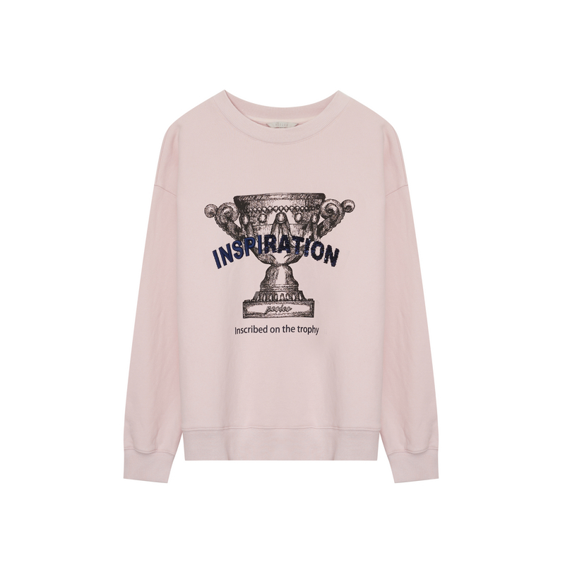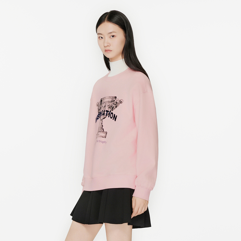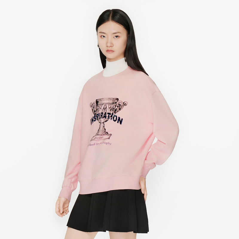 字母图案减龄保暖长袖 飘蕾粉色圆领套头卫衣冬季 清仓直降