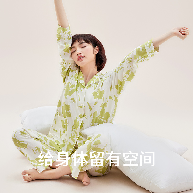 商场尾货清仓 春秋套装 小翻领纯棉睡衣女秋季 长裤 长袖 秋鹿