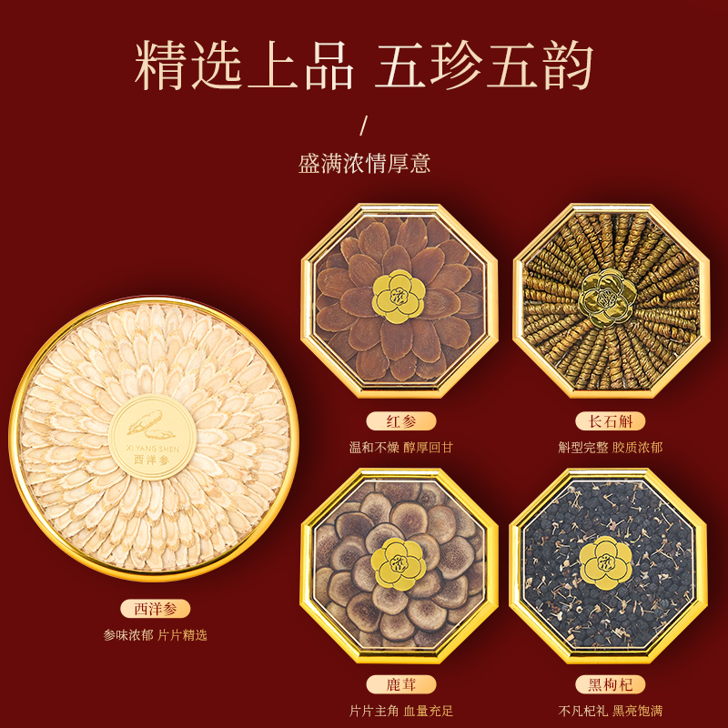 西洋参红参黑枸杞石斛五拼礼盒送礼长辈父母正品 中老年人滋补品