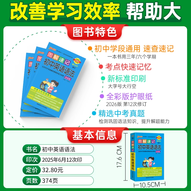 2026适用pass绿卡图解速记初中英语语法考频版 七八九年级中考真题自测初一二三语法强化全解读辅导大全语法讲练词汇基础知识练习辅